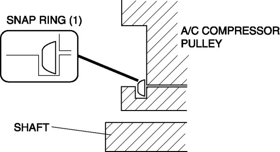 1. When installing a new pressure plate, A/C compressor pulley, stator, or A/C compressor body, replace the snap ring (1).