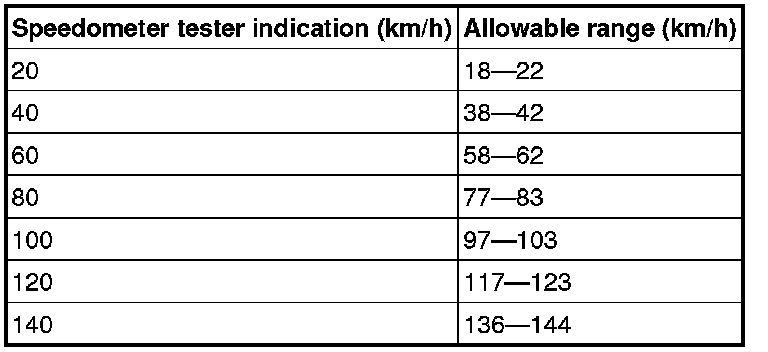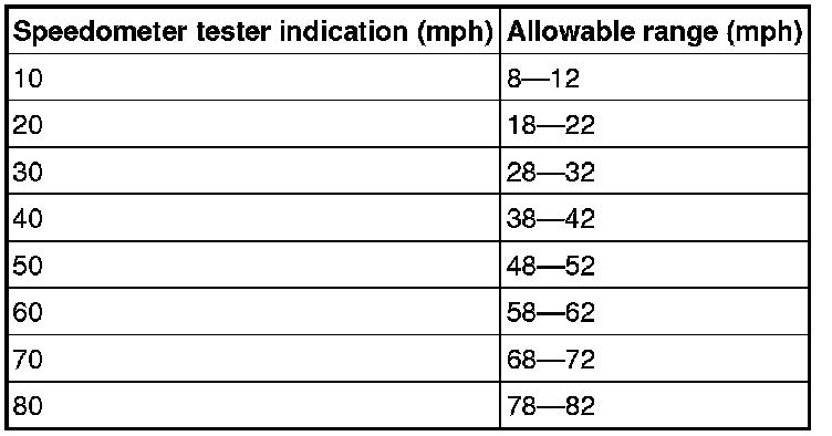 2. Using a speedometer tester, verify that the tester reading is as indicated in the table.