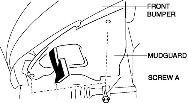 3. Remove the screw A shown in the figure and bend back the mudguard in the direction of the arrow.