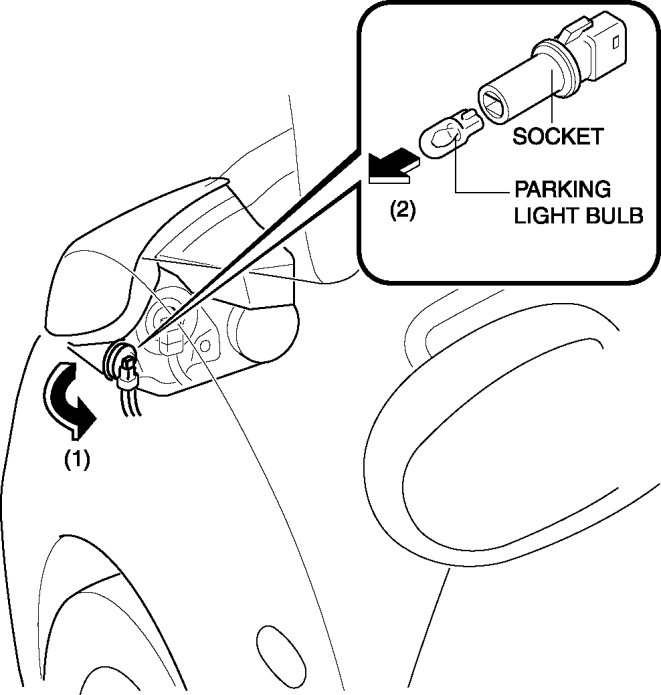3. Remove the parking light bulb from the socket in the direction of the arrow (2).