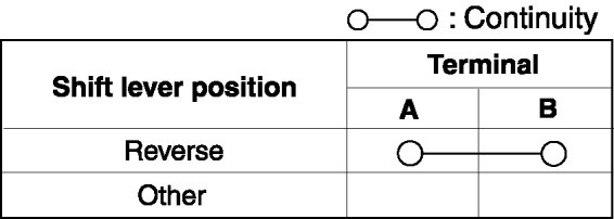 3. Verify that the continuity between the back-up light switch terminals is as indicated in the table.