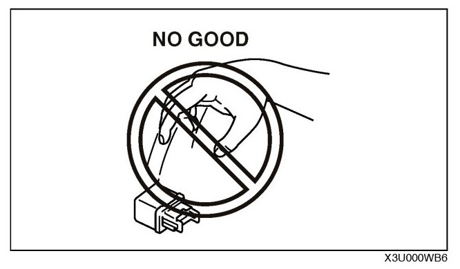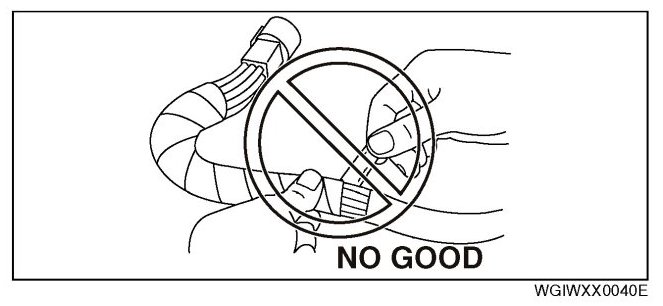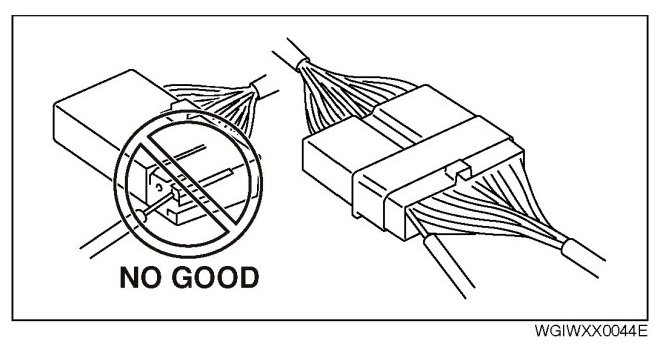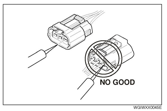 - When a tester is used to inspect for continuity or measuring voltage, insert the tester probe from the wiring harness side.