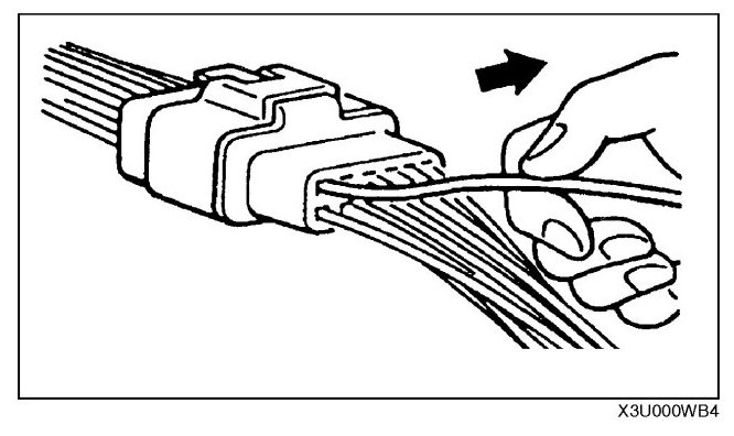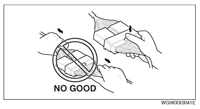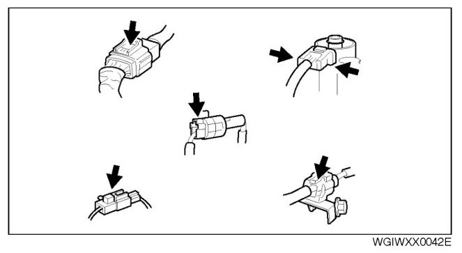 - Inspect the terminals of waterproof connectors from the connector side since they cannot be accessed from the wiring harness side.