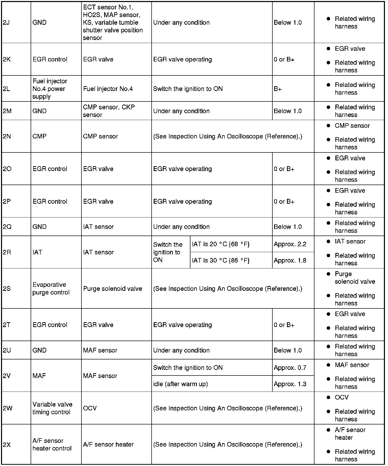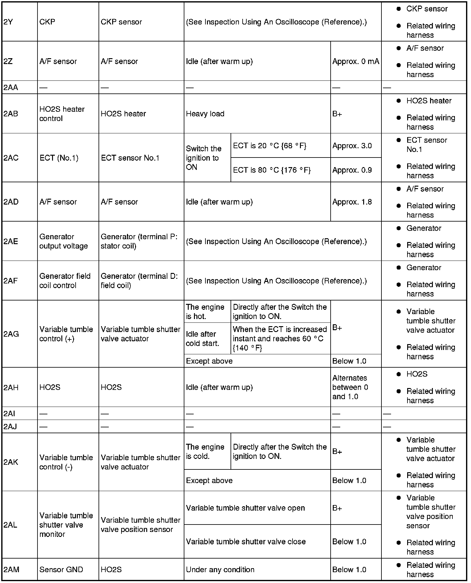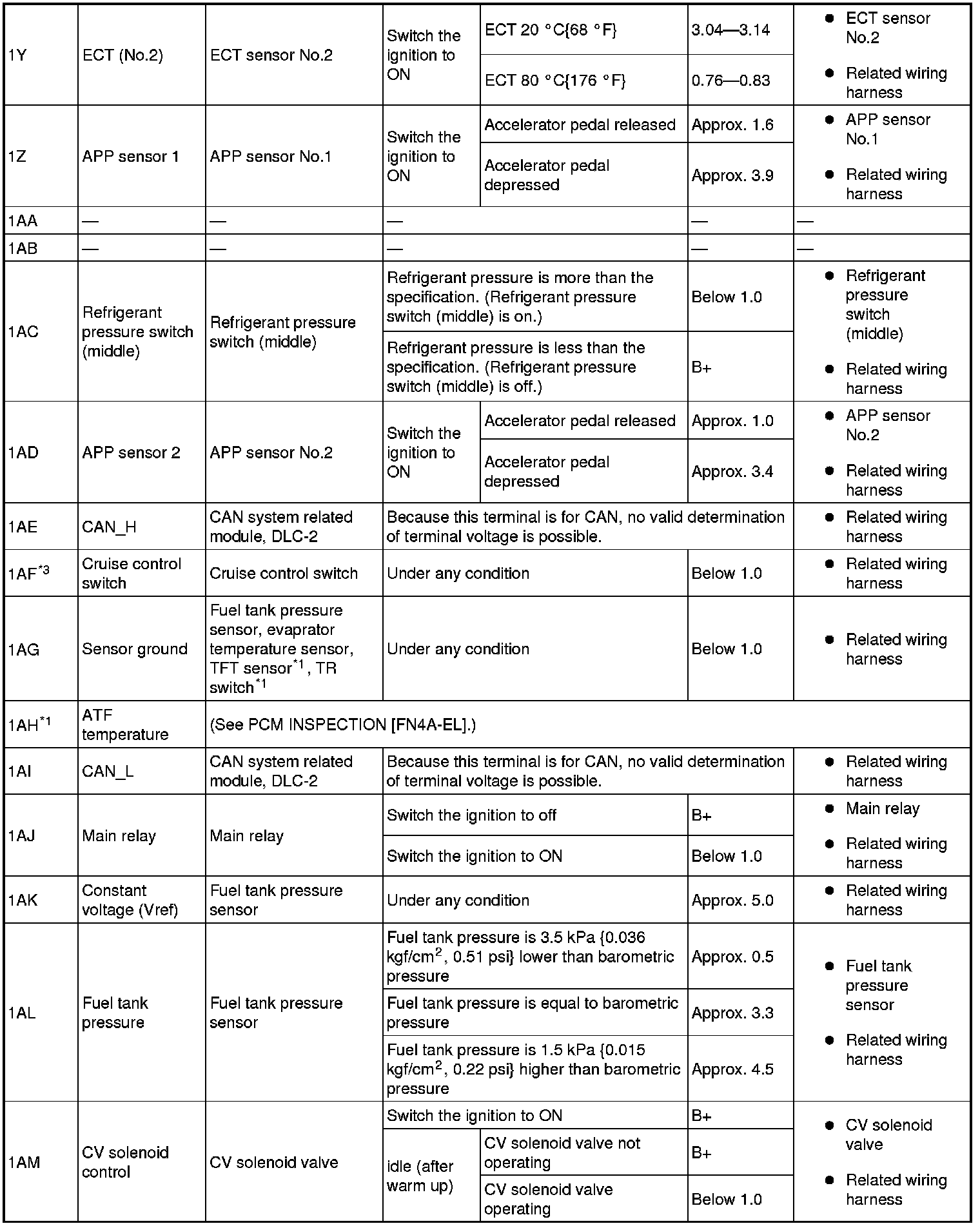 - The PCM terminal voltages vary with change in measuring conditions and vehicle conditions. Always carry out a total inspection of the input systems, output systems, and PCM to determine the cause of trouble. Otherwise, a wrong diagnosis will be made.