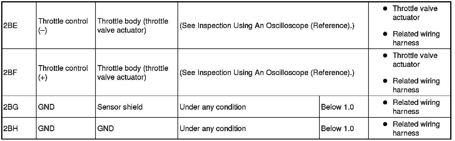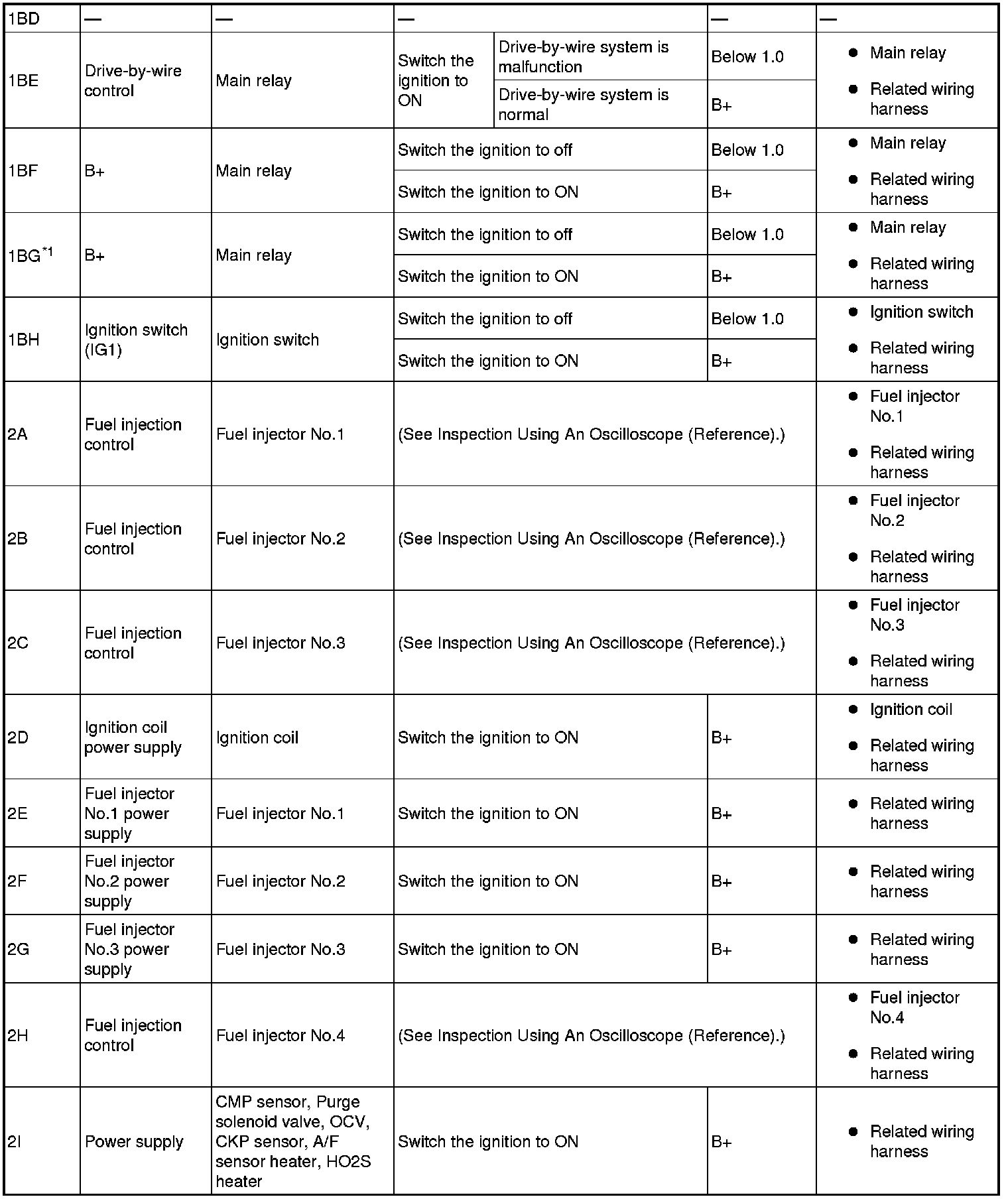 - Fuel injector No.1: 2A (+)-Negative battery terminal (-)
