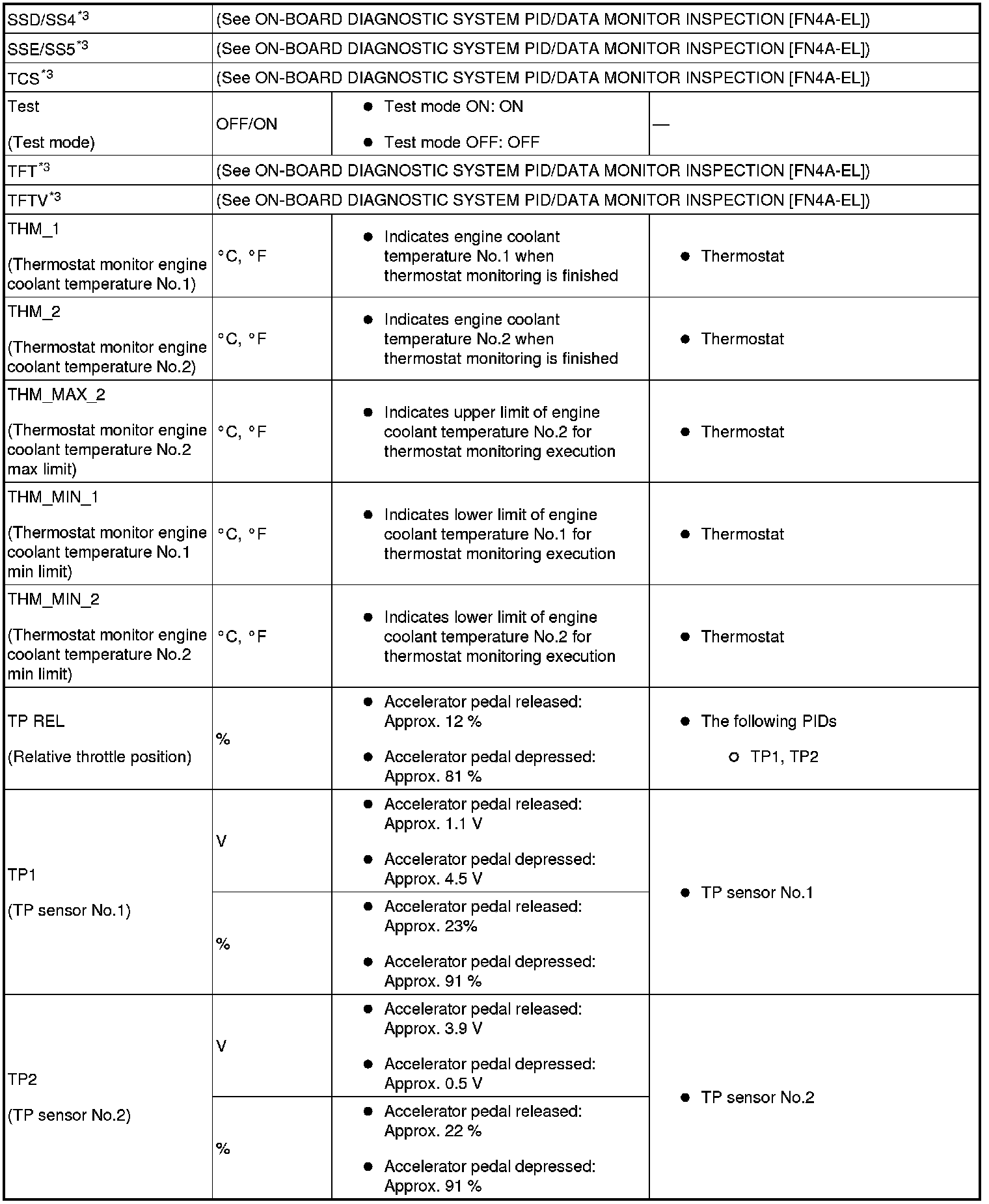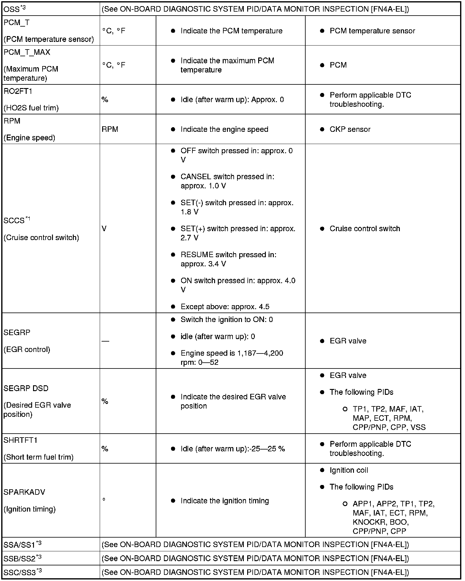 - PIDs for the following parts are not available on this model. Go to the appropriate part inspection.