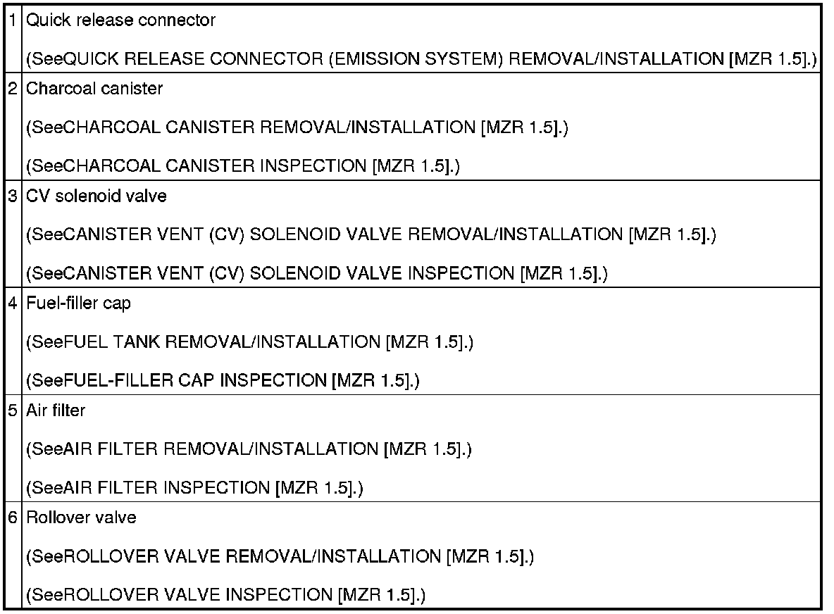 EMISSION SYSTEM LOCATION INDEX [MZR 1.5]