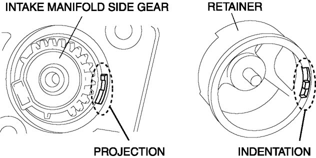 1. Install the retainer by positioning the projection on the intake manifold with the indentation on the retainer.