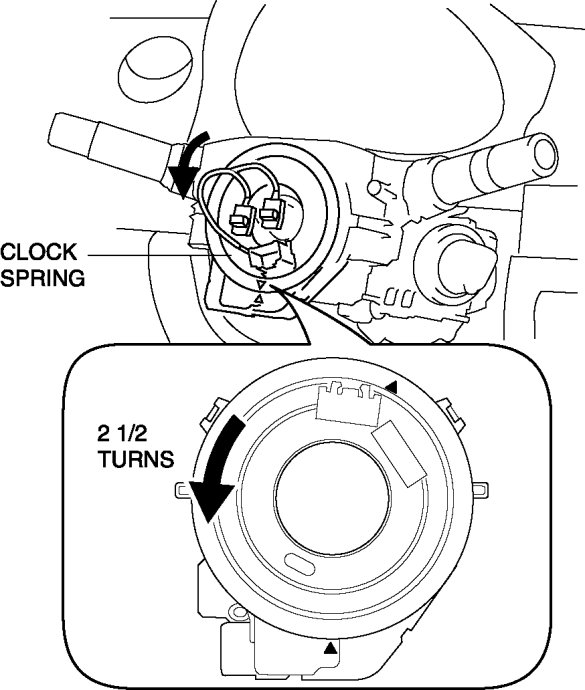 - The clock spring will break if over-wound. Do not forcibly turn the clock spring.