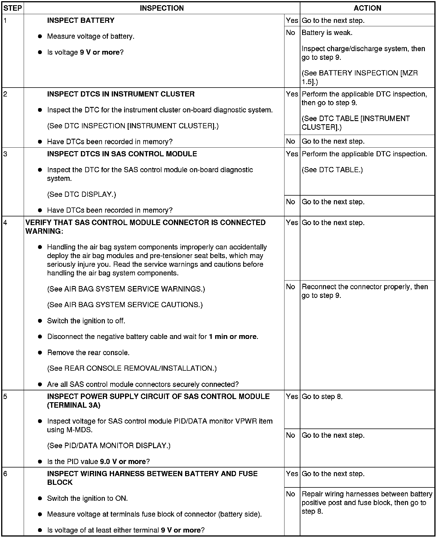 NO.2 AIR BAG SYSTEM WARNING LIGHT IS ILLUMINATED ALL THE TIME