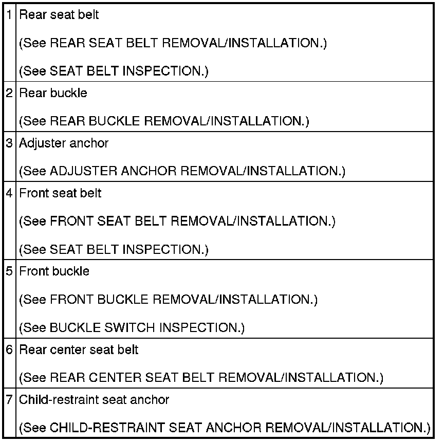 Seat Belt Systems: Locations