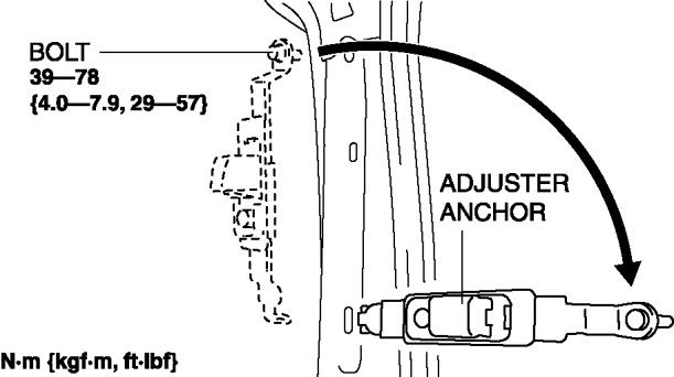 d. Front seat belt upper anchor installation bolt Front Seat Belt Removal/Installation