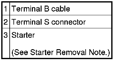 - When the battery cables are connected, touching the vehicle body with starter terminal B will generate sparks. This can cause personal injury, fire, and damage to the electrical components. Always disconnect the negative battery cable before performing the following operation.