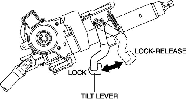 b. The steering shaft is fixed firmly when the tilt lever is locked.
