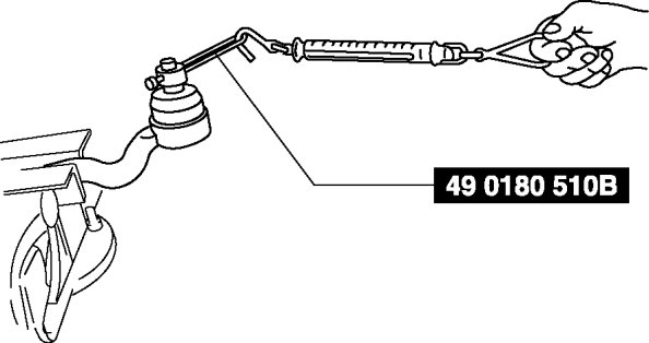 4. Measure the rotational torque of the tie-rod end using the SST and a pull scale.