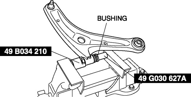 2. Remove the lower arm bushing using a vise and the SSTs.
