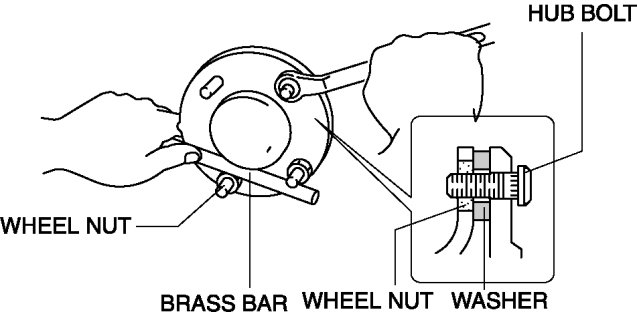 2. Remove the wheel hub bolt using the SST as shown in the figure.