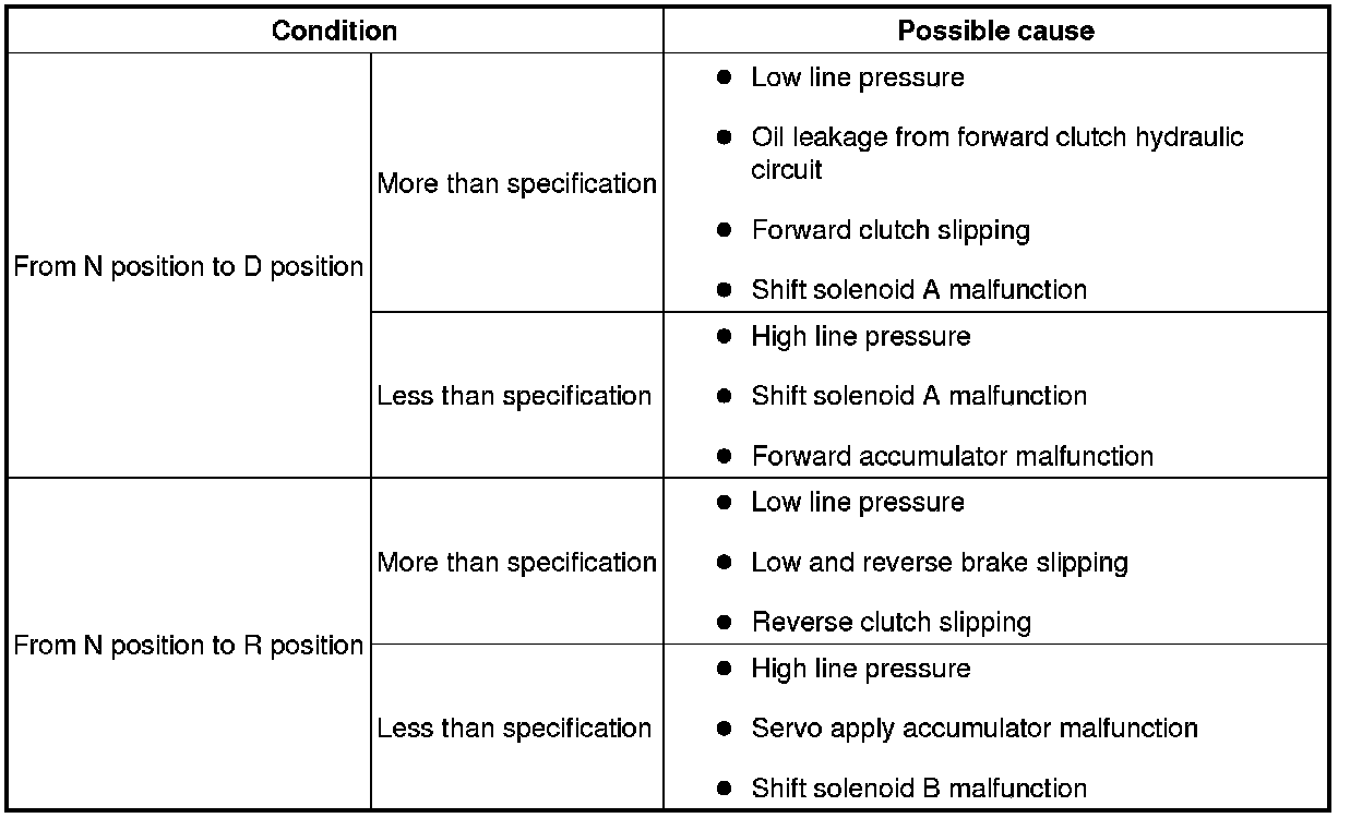 b. Measure the time it takes from shifting until shock is felt when shifting the selector lever from the N position to the D position.