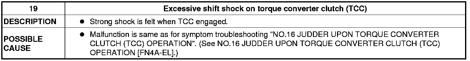 NO.19 EXCESSIVE SHIFT SHOCK ON TORQUE CONVERTER CLUTCH (TCC) [FN4A-EL]