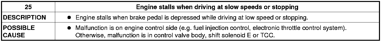 No. 25 Engine Stalls When Driving At Slow Speeds Or Stopping