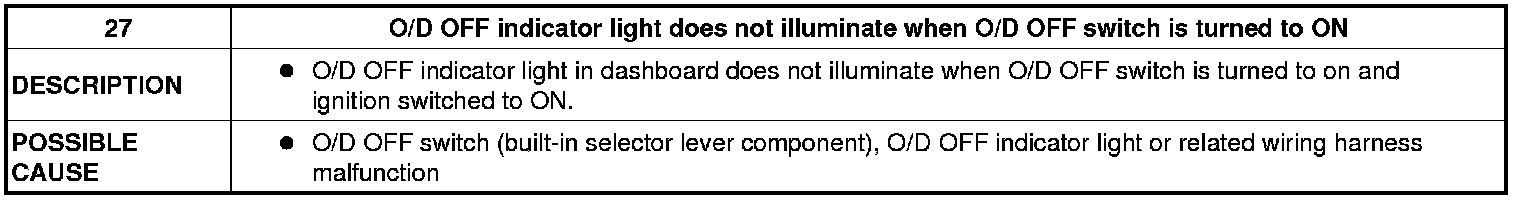 No. 27 O/D OFF Indicator Light Does Not Illuminate When O/D OFF Switch Is Turned To ON