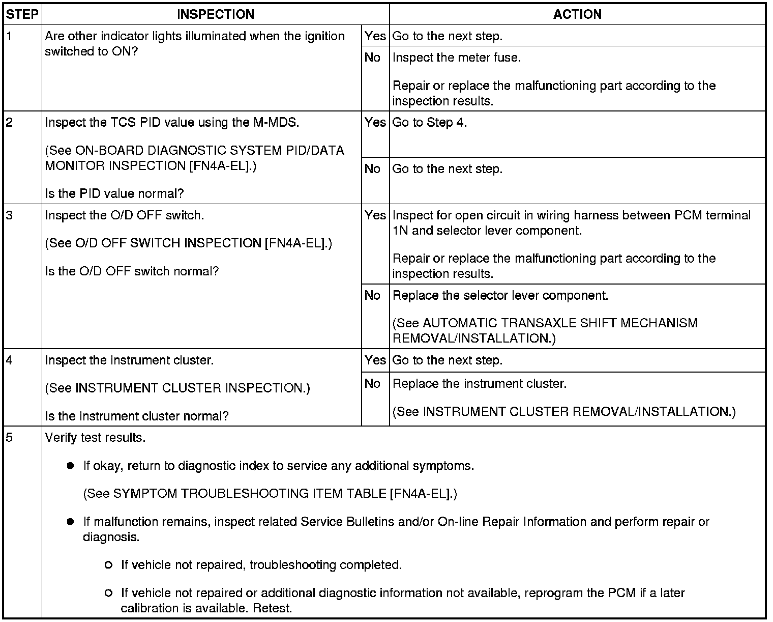NO.27 O/D OFF INDICATOR LIGHT DOES NOT ILLUMINATE WHEN O/D OFF SWITCH IS TURNED TO ON [FN4A-EL]