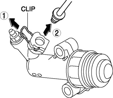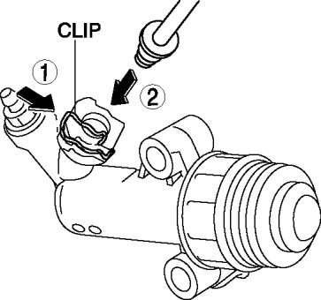 1. Pull the clip to the position shown in the figure and pull out the clutch pipe connector straight to detach it.
