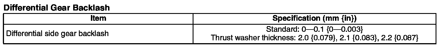 - If it exceeds the specification even when a 2.2 mm {0.087 in} thick thrust washer is used, replace the differential component.