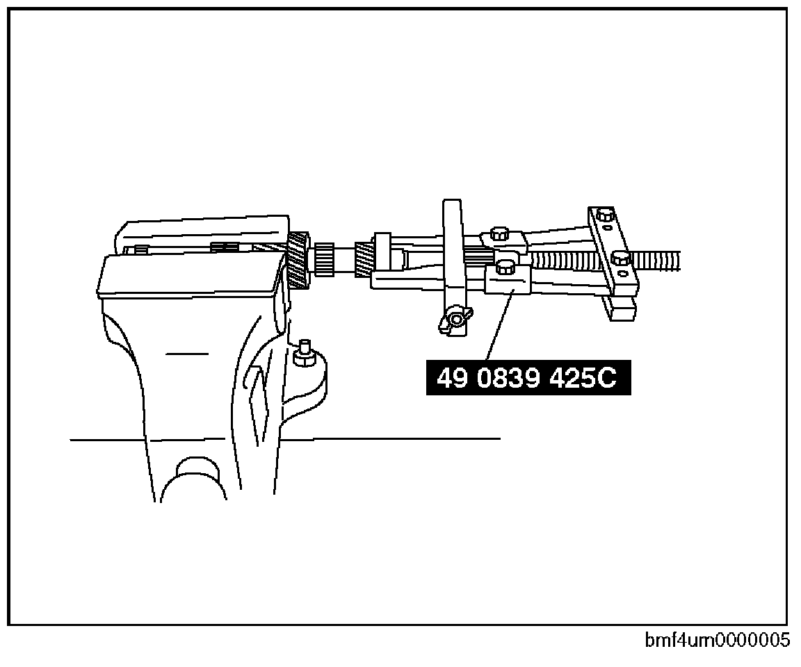 Caution: Use protective plates in the vise to prevent damage to the primary shaft gear.