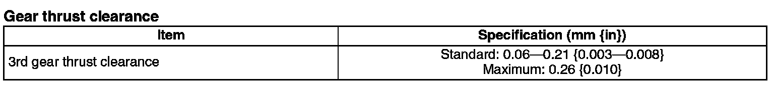 - If it exceeds the maximum specification, inspect the contact surfaces of the 4th gear, bearing, and 3rd/4th clutch hub. Replace worn and damaged parts.