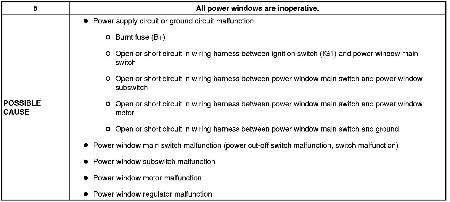 No.5 ALL POWER WINDOWS ARE INOPERATIVE [POWER WINDOW SYSTEM]