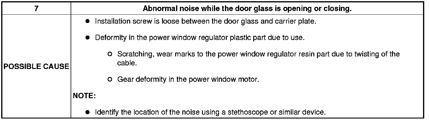 No.7 ABNORMAL NOISE WHILE THE DOOR GLASS IS OPENING OR CLOSING [POWER WINDOW SYSTEM]