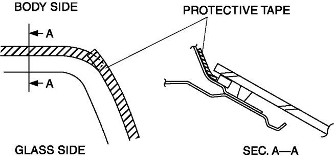 - Before removing the rear window glass from the body, mark the position of the glass by affixing tape to the glass and body panel.