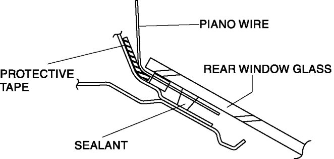 7. Secure one end of piano wire, and while pulling the other end, cut the sealant around the rear window glass.