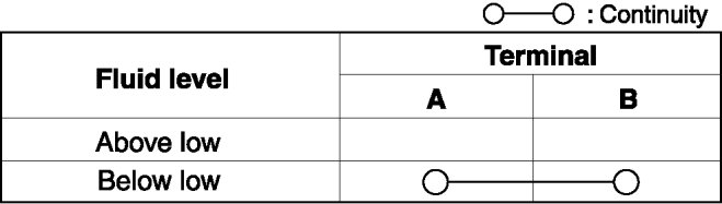 4. Verify that continuity between the washer fluid-level sensor terminals is as indicated in the table.