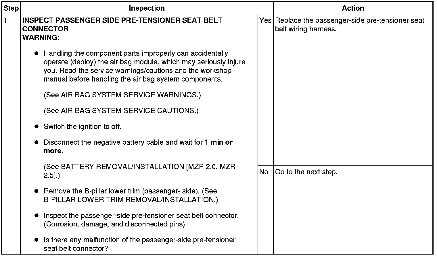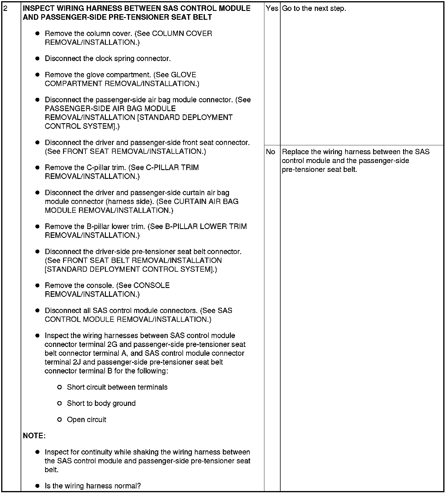 - Wiring harness between the passenger-side pre-tensioner seat belt and SAS control module has a malfunction