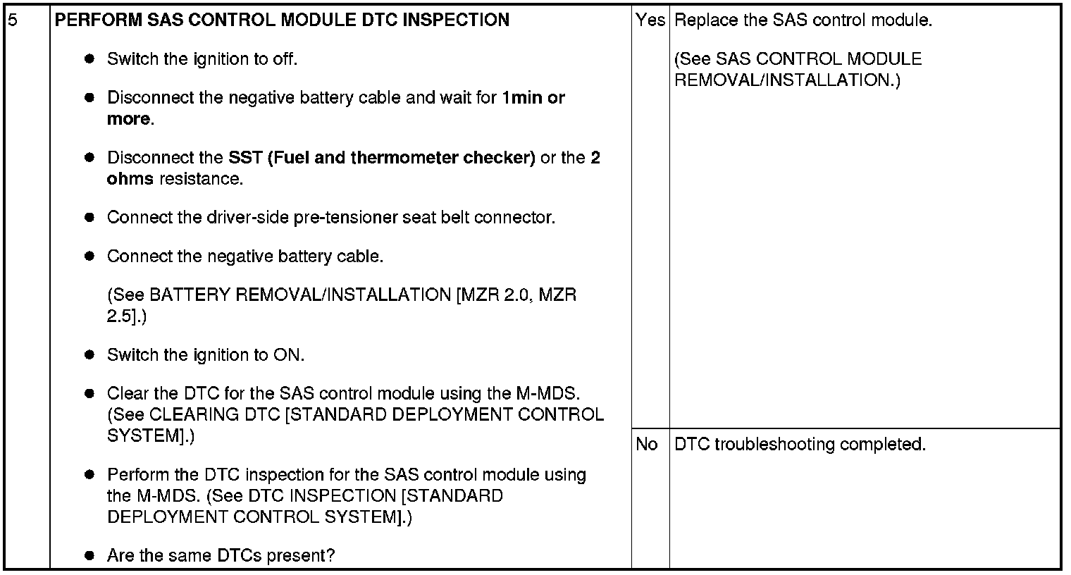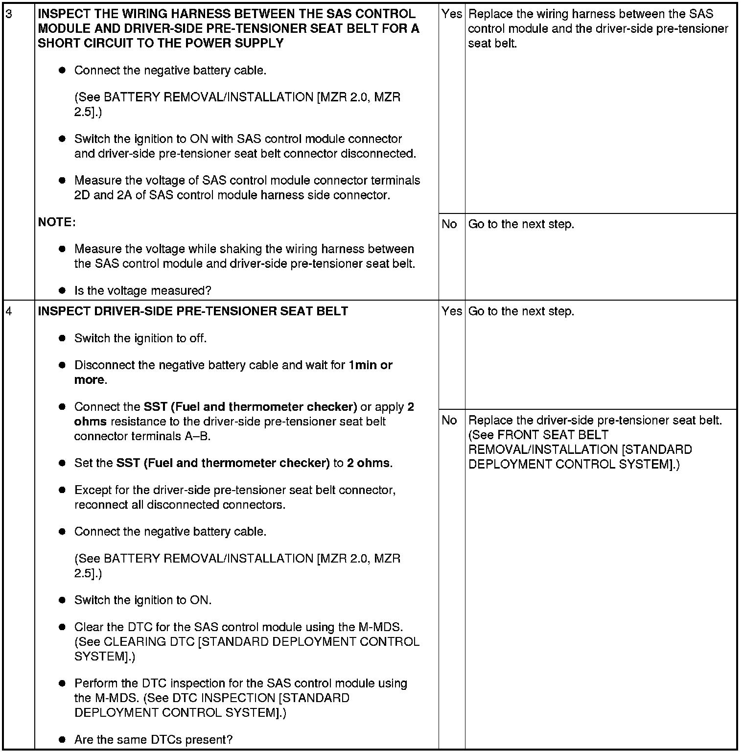 - Wiring harness between the driver-side pre-tensioner seat belt and SAS control module has a malfunction