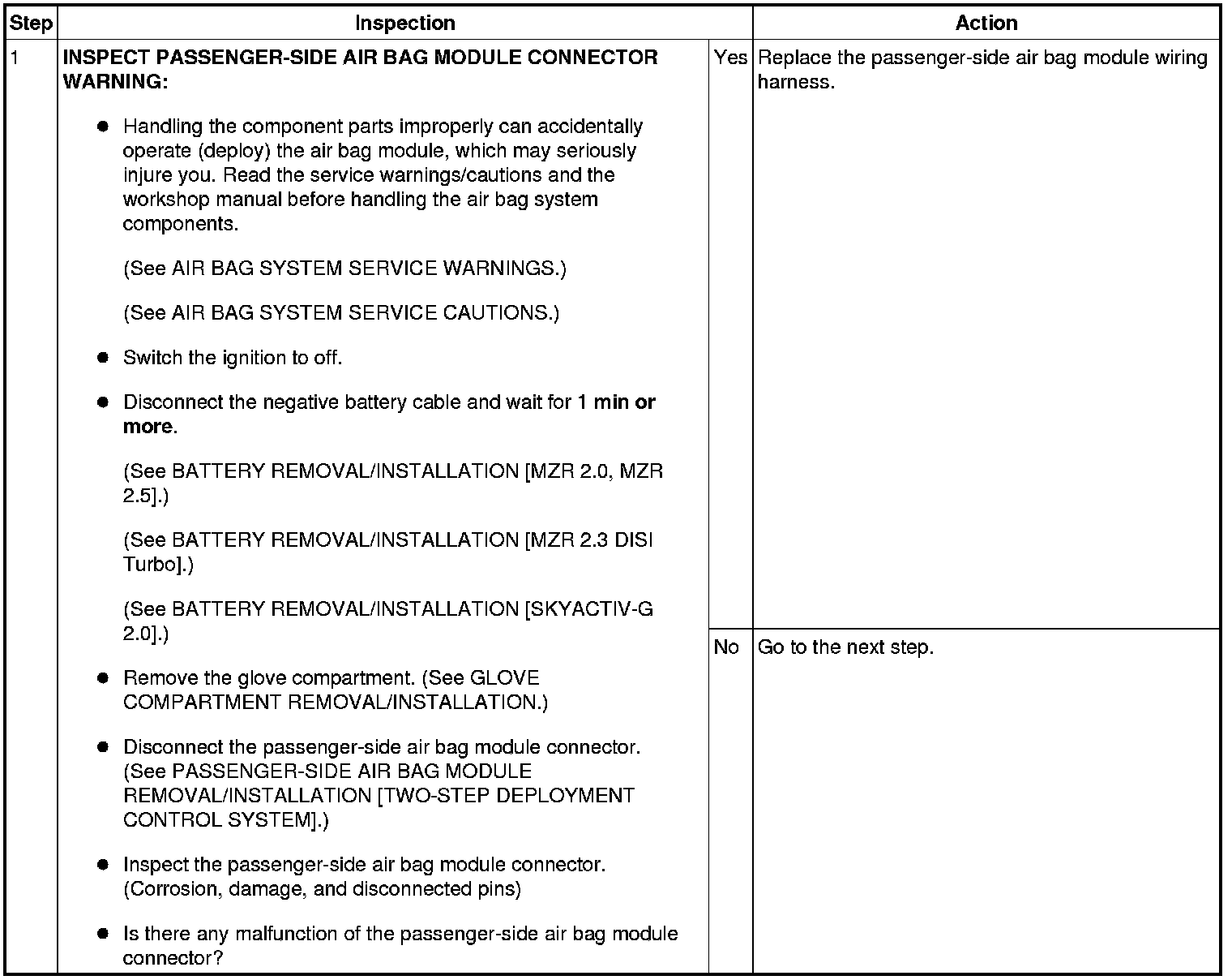 - Malfunction in the wiring harness between the passenger-side air bag module (inflator No.1) and SAS control module