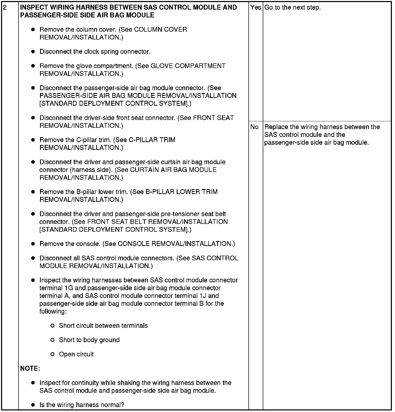 - Wiring harness between the passenger-side side air bag module and SAS control module has a malfunction