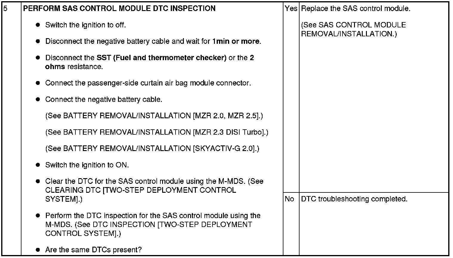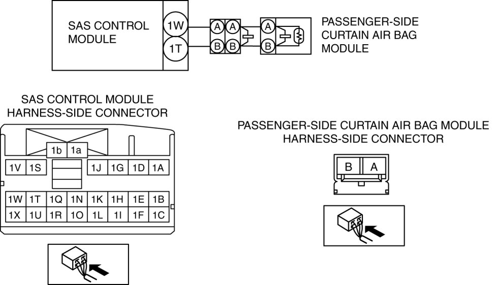 - Open or short circuit or short to ground or short to power supply in the wiring harness between the passenger-side curtain air bag module and SAS control module