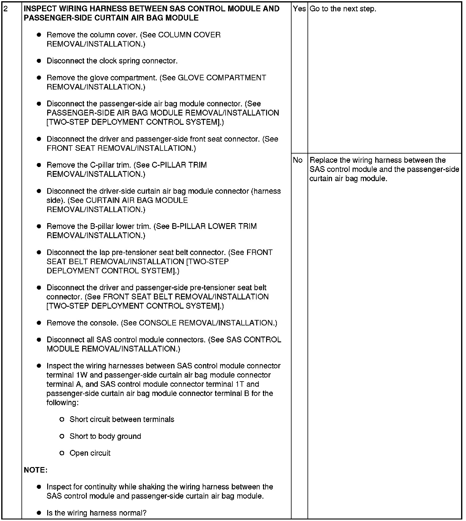 - Wiring harness between the passenger-side curtain air bag module and SAS control module has a malfunction