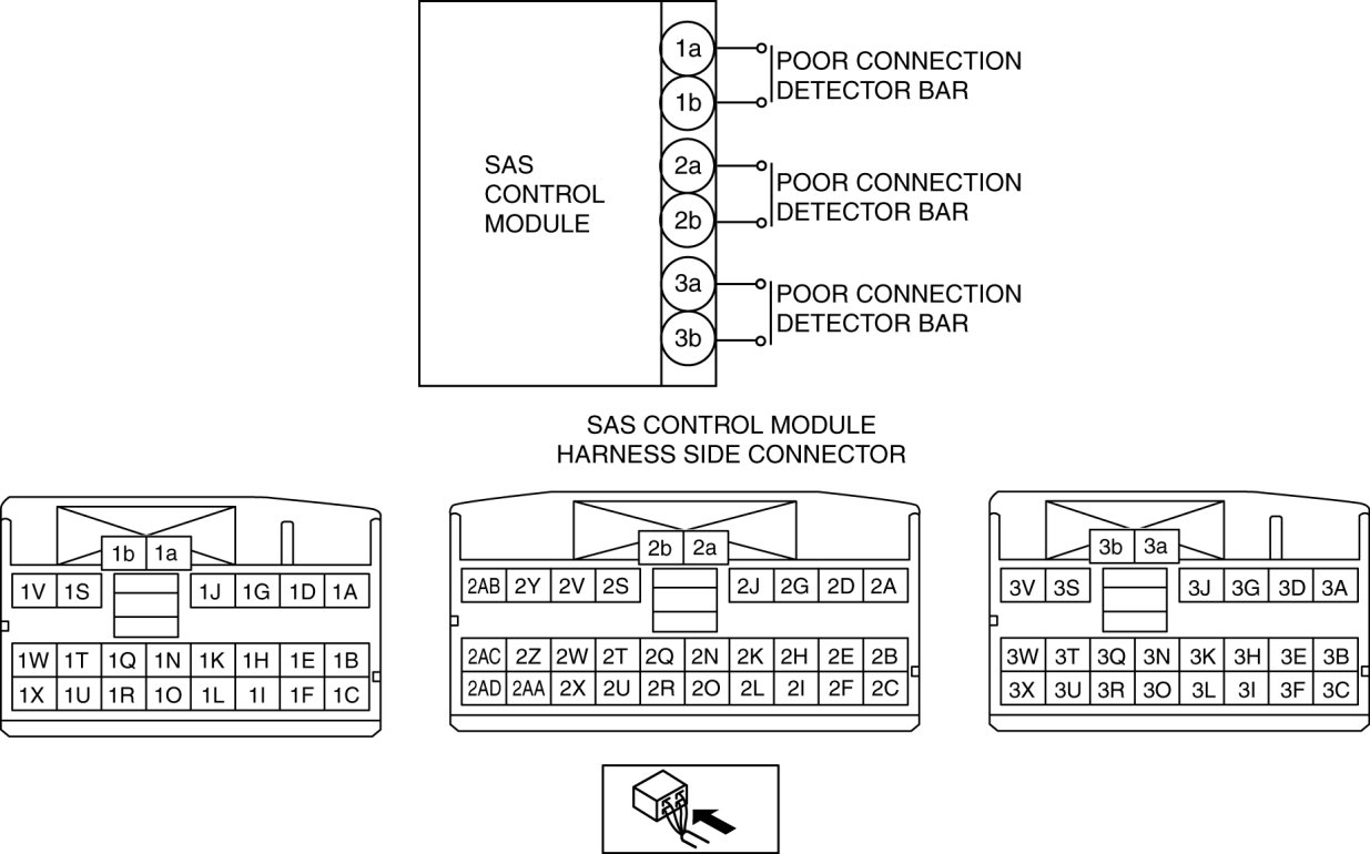 - No continuity between poorly connected detector bar terminals of the SAS control module