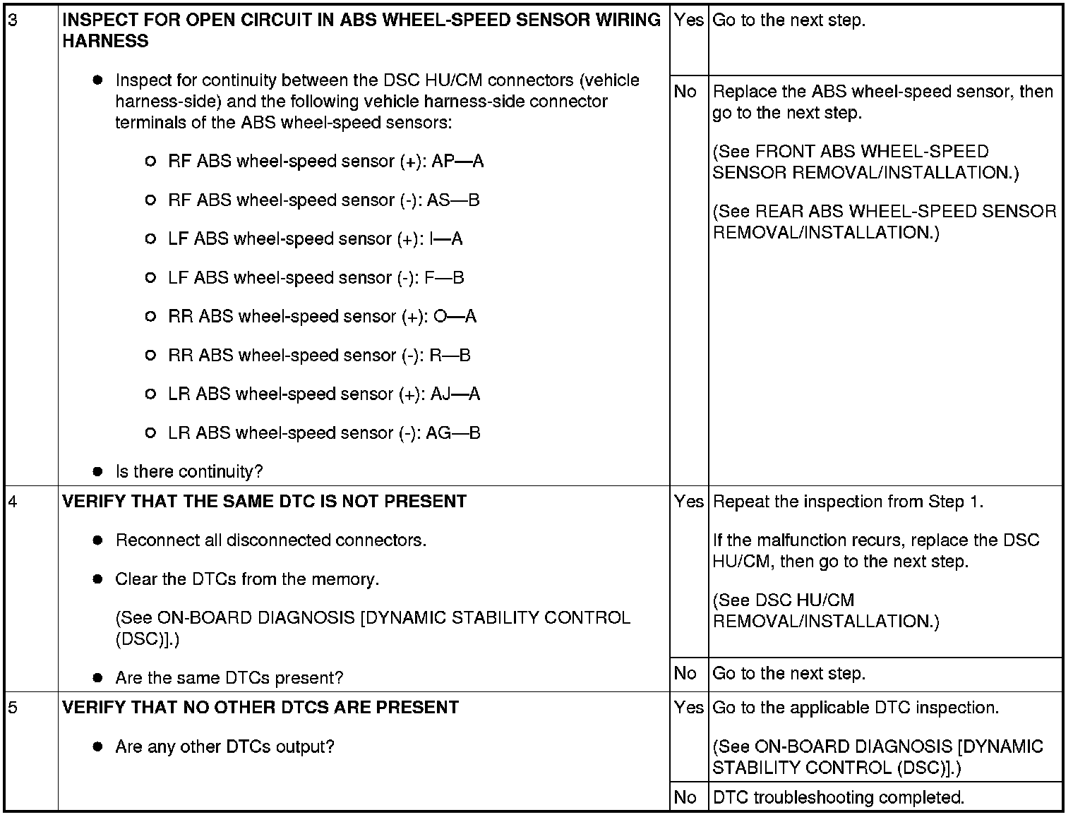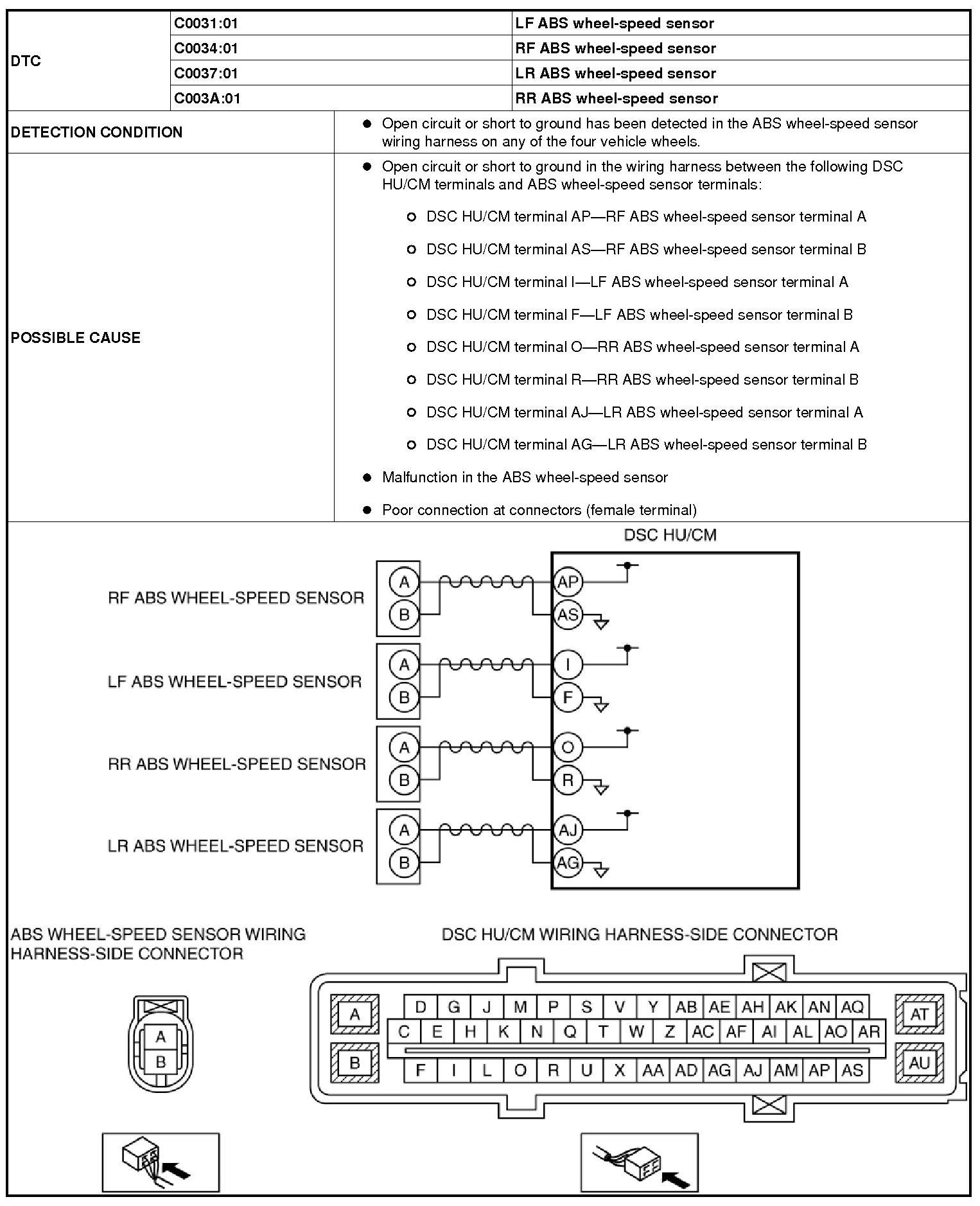 DTC C0031:01 / C0034:01 / C0037:01 / C003A:01 [DYNAMIC STABILITY CONTROL (DSC)]