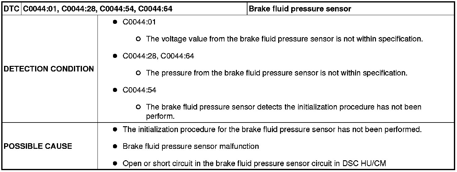 DTC C0044:01 / C0044:28 / C0044:54 / C0044:64 [DYNAMIC STABILITY CONTROL (DSC)]