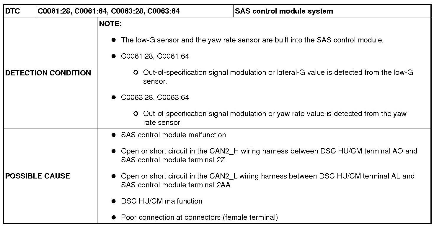 DTC C0061:28 / C0061:64 / C0063:28 / C0063:64 [DYNAMIC STABILITY CONTROL (DSC)]