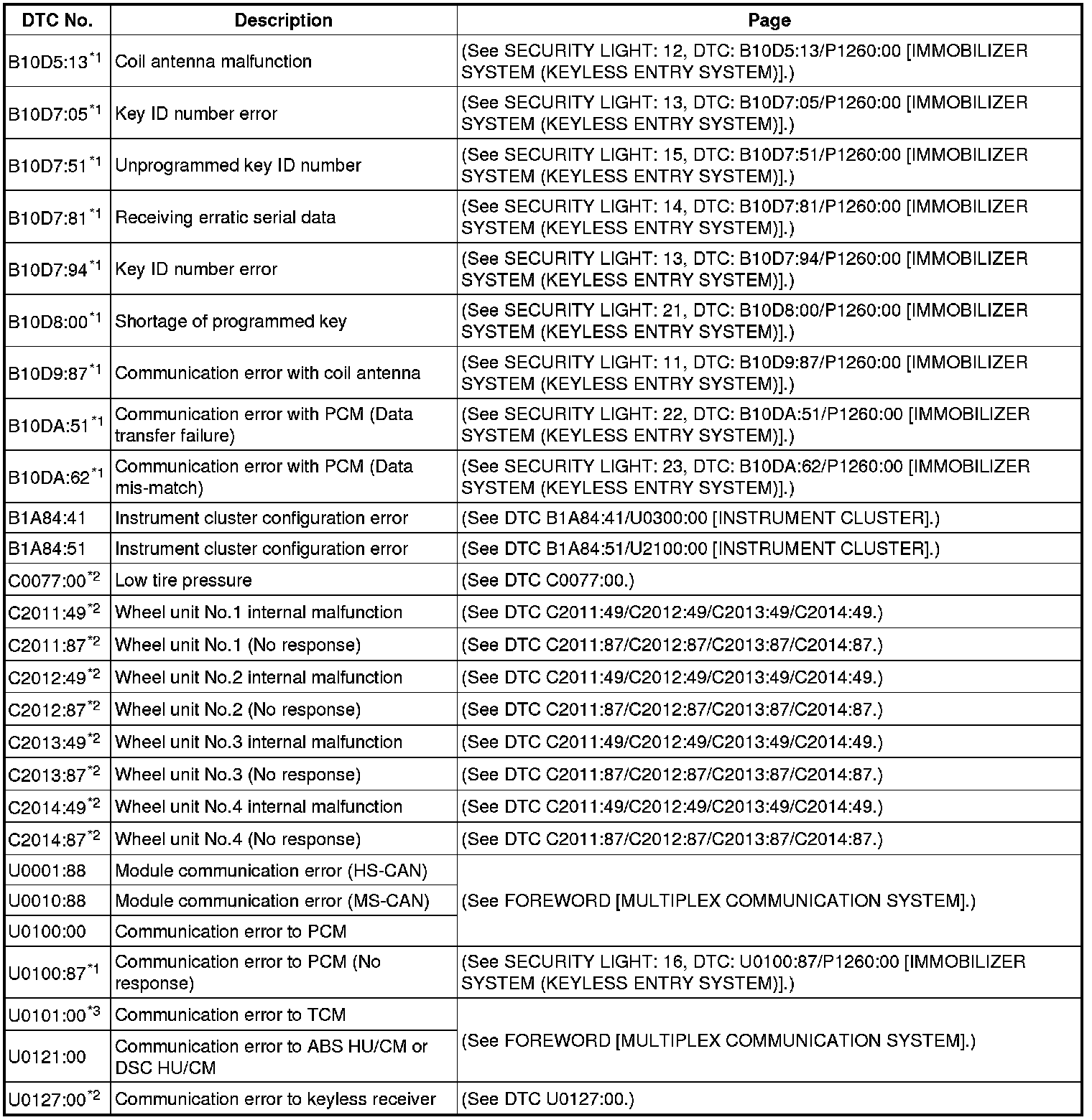 DTC TABLE [INSTRUMENT CLUSTER]
