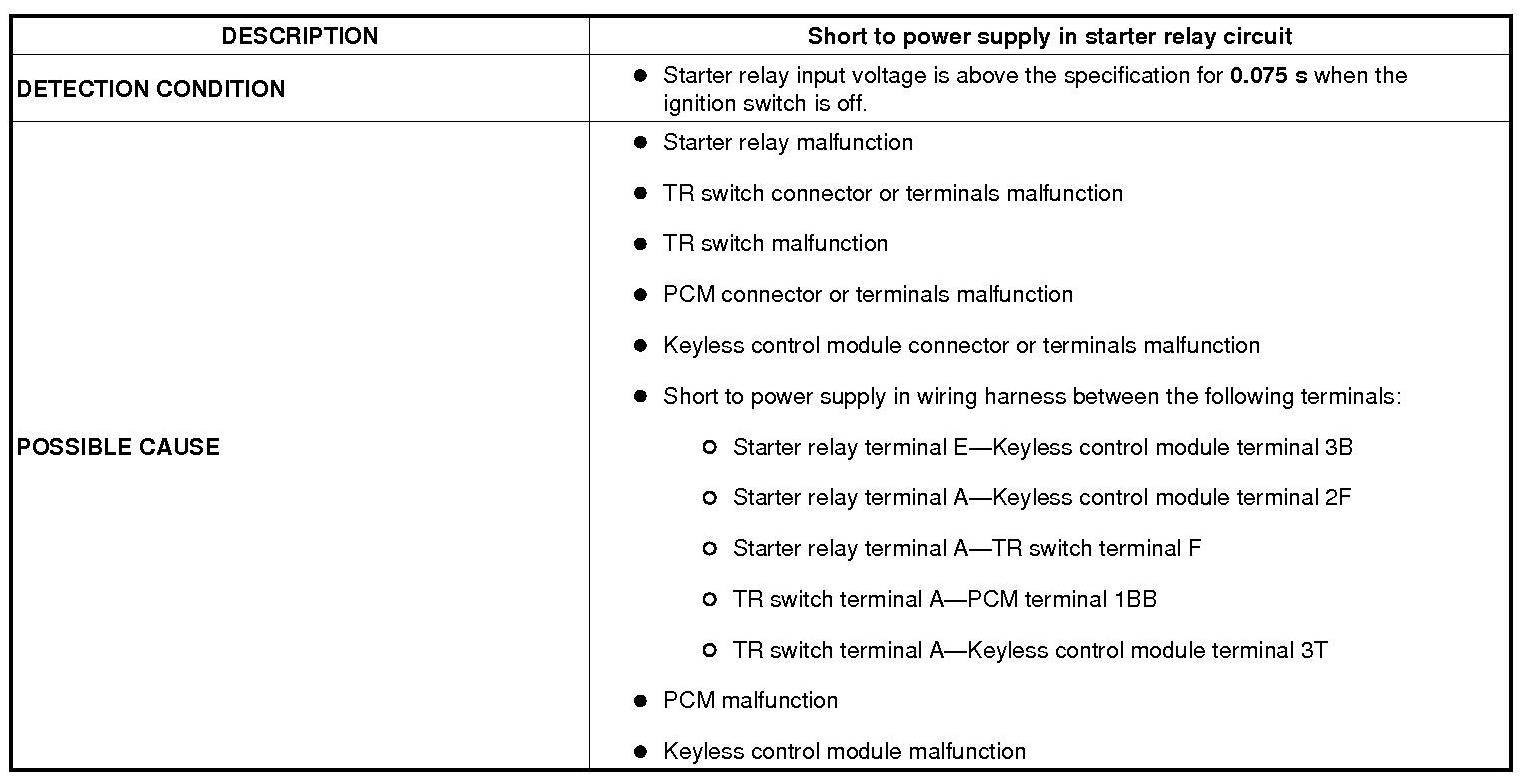 DTC P0615:12 [ADVANCED KEYLESS ENTRY AND PUSH BUTTON START SYSTEM]