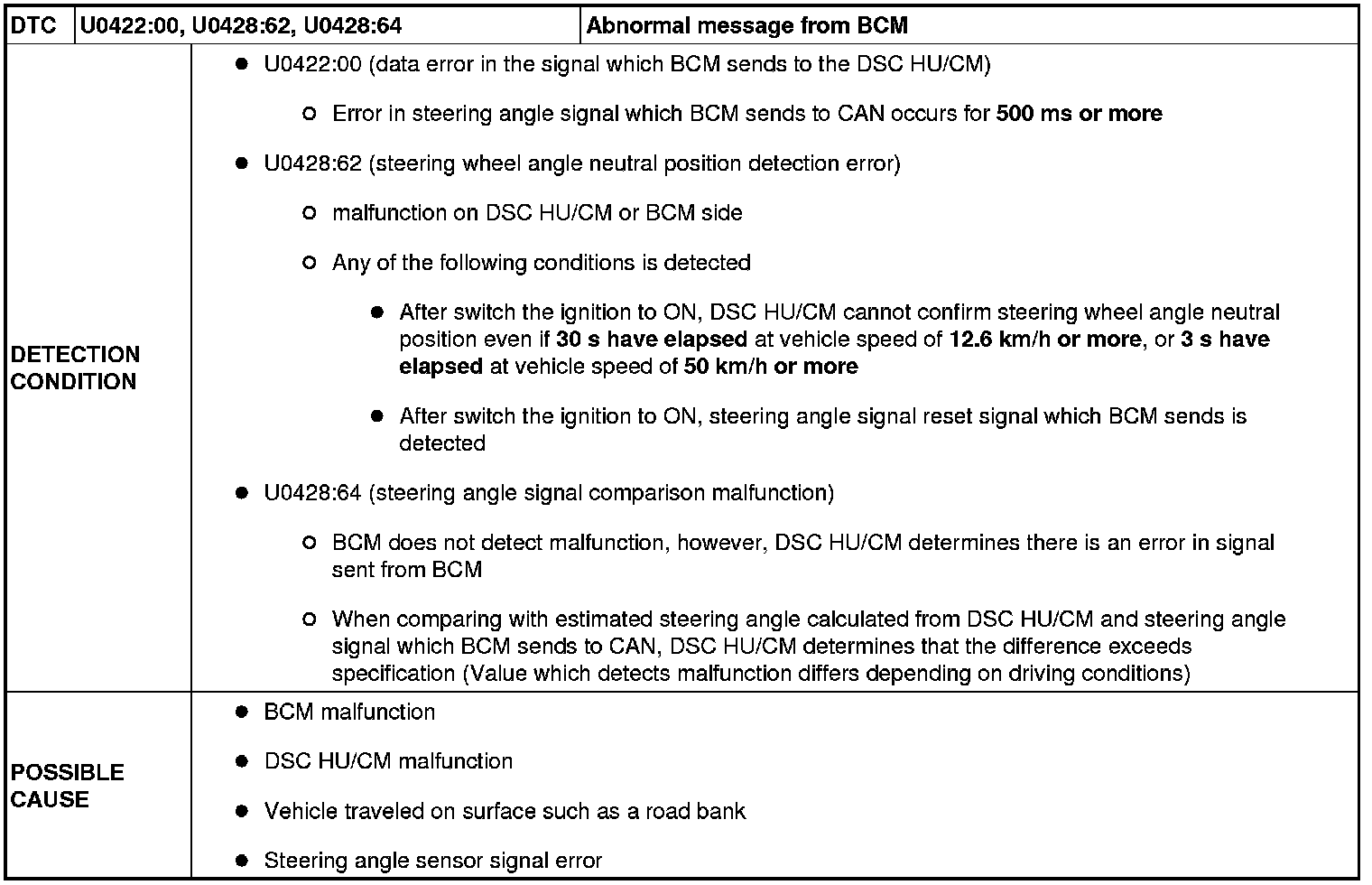 DTC U0422:00 / U0428:62 / U0428:64 [DYNAMIC STABILITY CONTROL (DSC)]