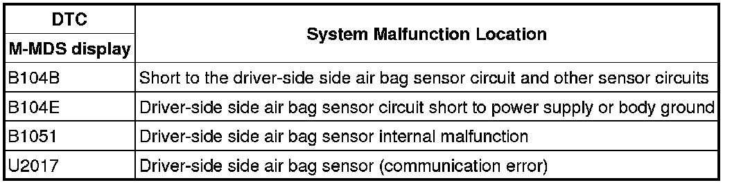 DTC B104B, B104E, B1051, U2017 [STANDARD DEPLOYMENT CONTROL SYSTEM]