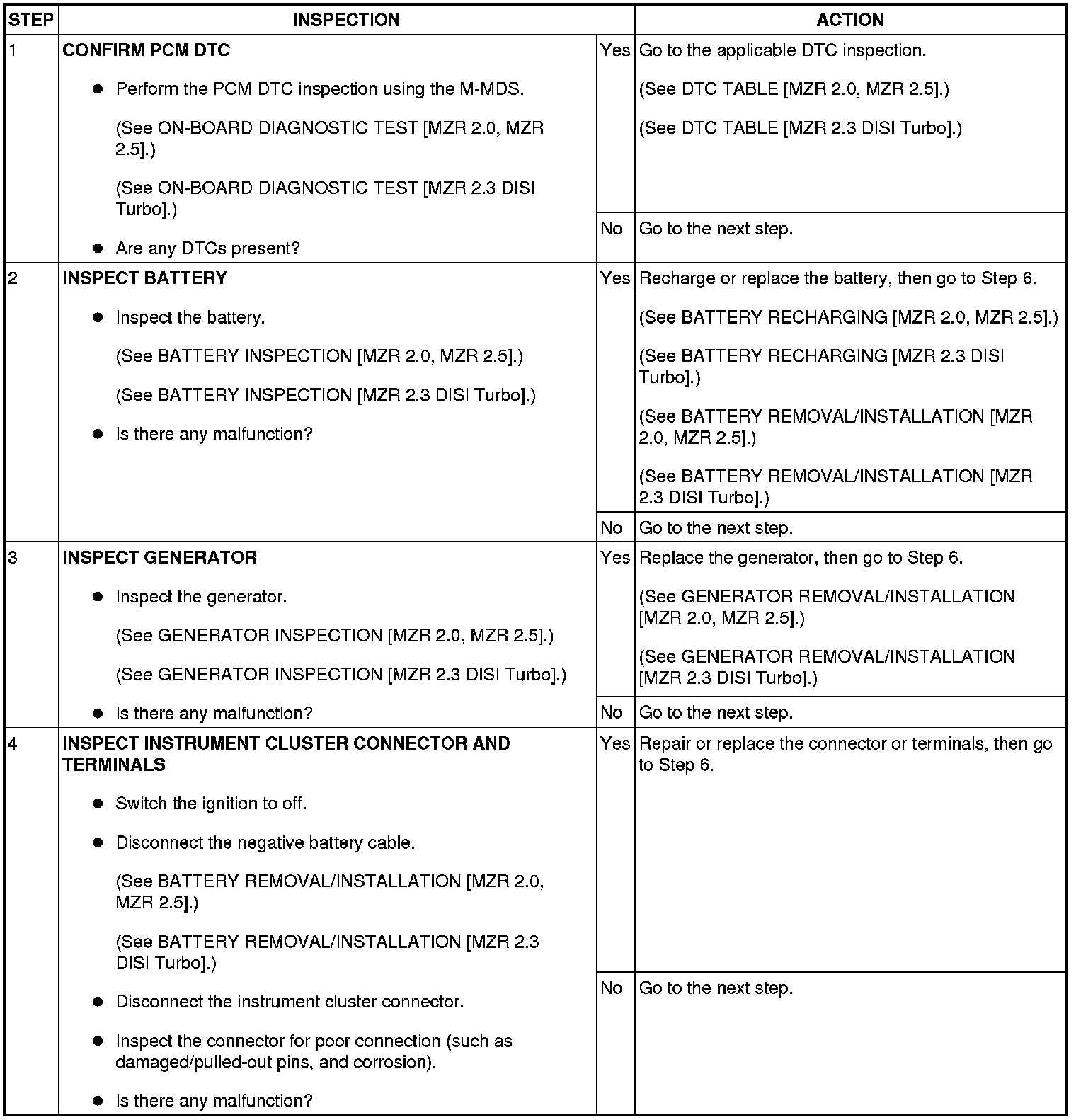 MZR 2.0, MZR 2.5, MZR 2.3 DISI Turbo